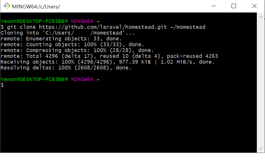 "home" 디렉토리안에 Homestead 폴더로 저장소를 복제