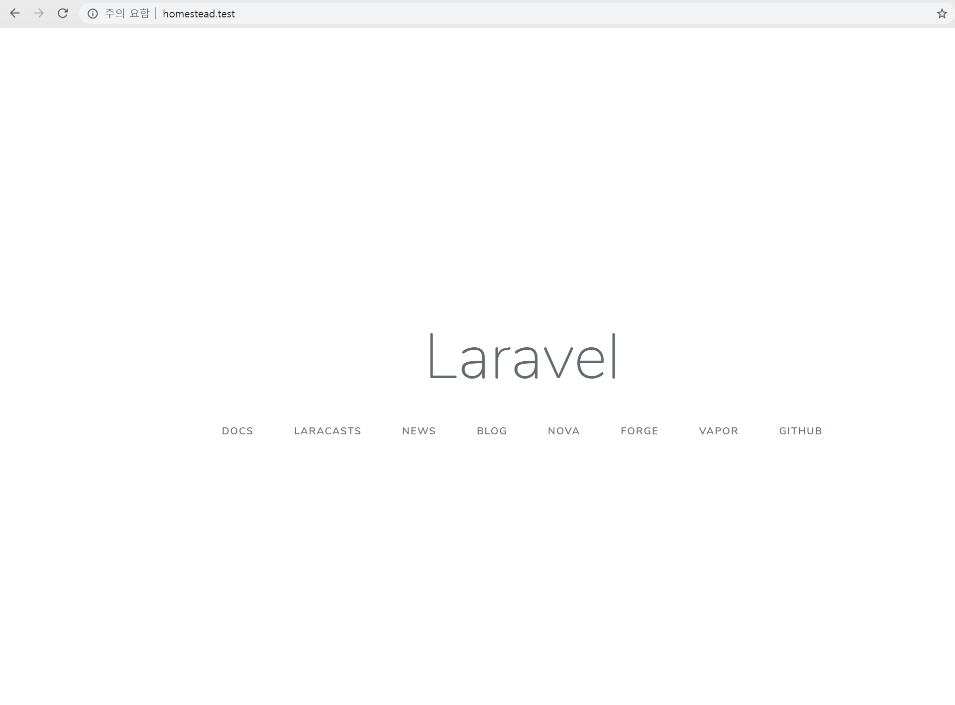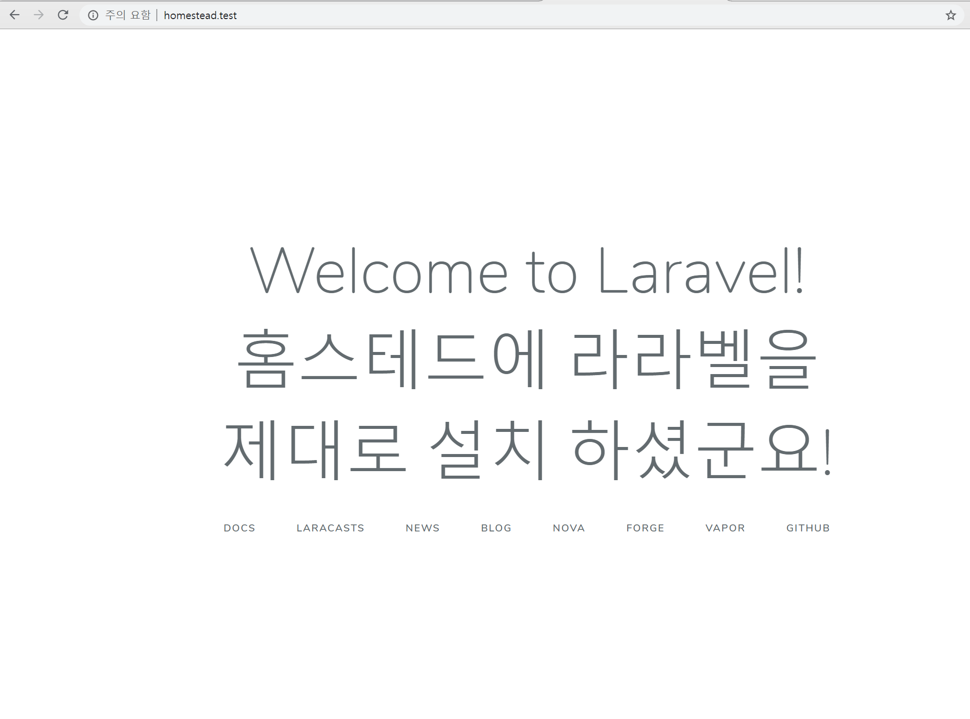 Homestead.yaml 파일에서 지정했던 사이트 도메인을 주소창에 치면 아래와 같은 화면이 나와야 정상