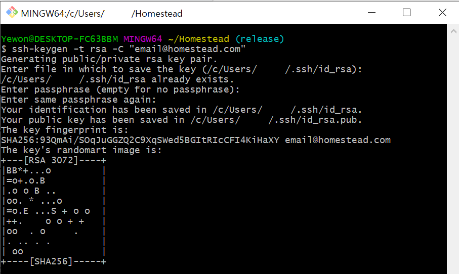 ssh-keygen -t rsa -C "email@homestead.com"