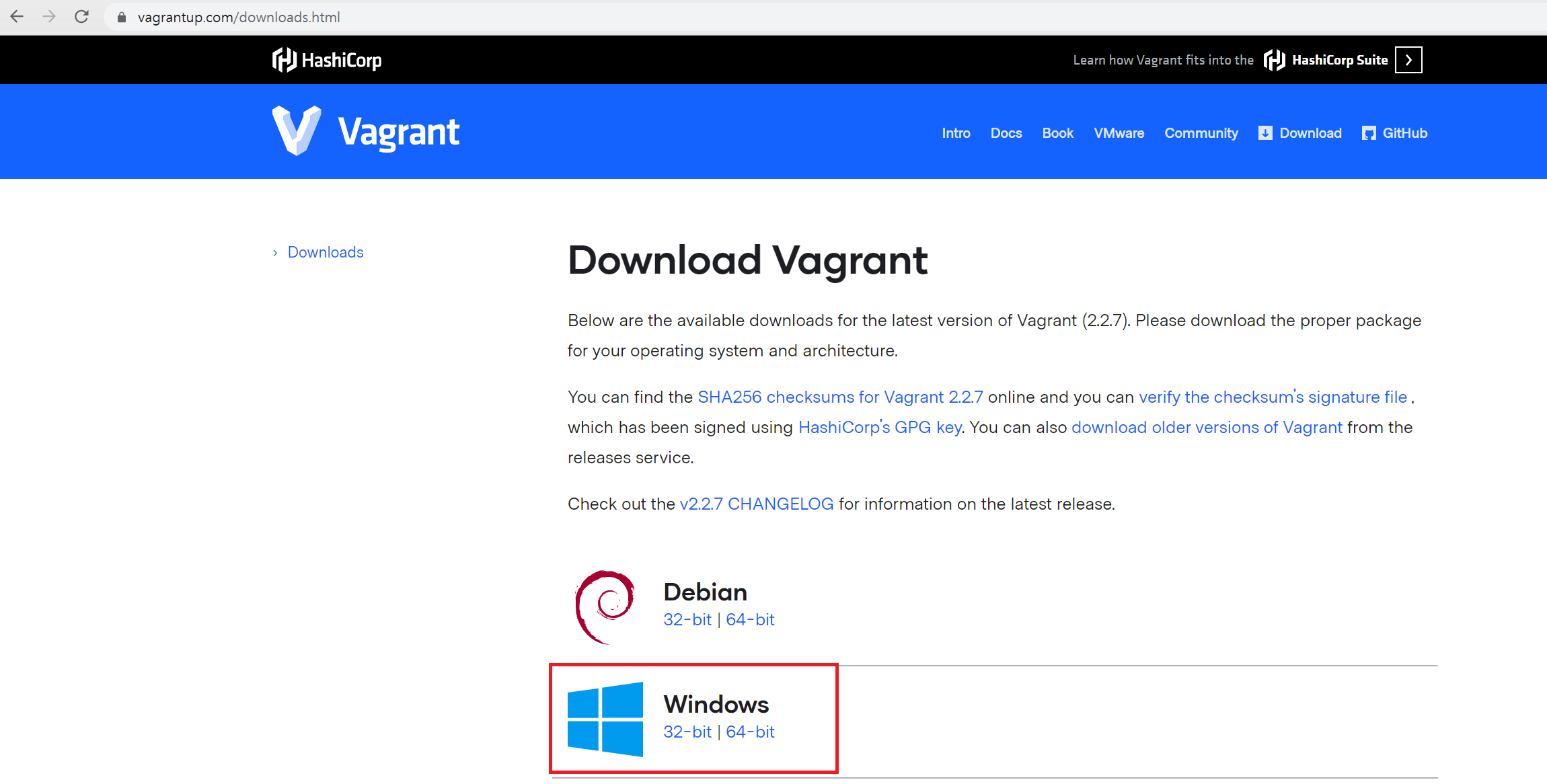 This page lists all the available downloads for Vagrant.