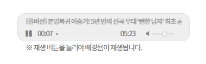 재생버튼을 클릭하면 재생시간이 초단위로 변경되며 배경음 진행상태가 progress bar로 표현된다.